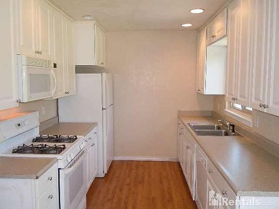 Near Folsom Boulevard and Zinfandel Drive in Rancho Cordova, this remodeled one-story single family home offers three bedrooms and one full bathroom. The Pergo entry has lead glass and opens onto gray carpeting, custom paint, recessed lighting, dual pane windows and curtains throughout 1027 square feet of living space. The living room has a coat closet and a plant loft, and is wired for Surround sound. The kitchen has Pergo floor, wood cabinets and formica counters, and is equipped with gas range with self-cleaning oven, frost-free refrigerator, microwave, dishwasher, stainless steel double sink and garbage disposal. There is also a formal dining room with Pergo floor, wainscotting, ceiling fan with overhead lighting, and a French door to the rear yard. The bedrooms have ceiling fans with overhead lighting and double-door closets, one being a cedar closet with built-in drawers. The bathroom has linoleum floor, Corian counter and shower over the tub. There is also a den with Pergo floor and ceiling fan with overhead lighting. This home has programmable central heat and air conditioning. The one-car garage has an automatic door opener, two workbenches, lots of shelving and cabinets, and a laundry area with both washer and dryer. This home has a security door. The large, fenced and landscaped yard has two patios, a peach tree, arbor with grapevines, storage shed and RV access, comes with full gardening service, and is equipped with automatic timer sprinklers in both front and rear. This home is located in the Folsom Cordova School District. No cats. Up to 2 dogs under 40lbs allowed with approval. Owner pays for water and sewer. Tenant pays for trash. Choose a six month or one year lease.