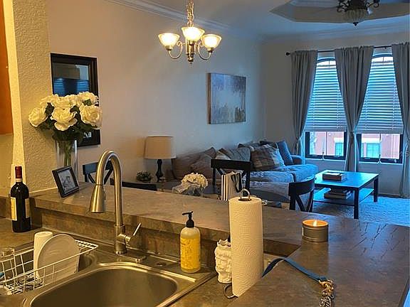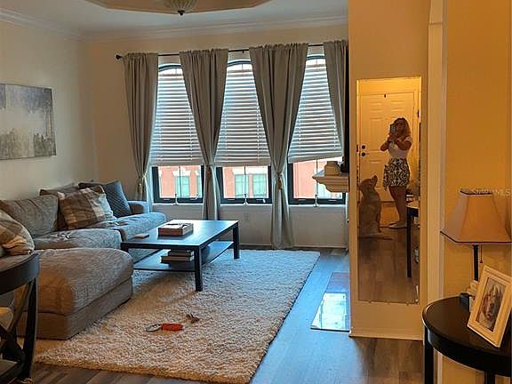 The Grand Bellagio is a gated waterfront property located on Tampa Bay. This 3rd floor, one bedroom/one bath condo features fresh neutral paint throughout. The living, dining & master bedroom area features crown molding. The living area has coffered ceiling, updated ceiling fan and a built-in Entertainment Center with gas fireplace. The 12" x 10' den may be used as your home office or additional sleeping area for guests. The Master bedroom features a spacious sitting area and oversized walk-in closet with updated closet system. New hurrcan windows ,Full size washer/dryer is conveniently located in the unit. Community amenities include a heated pool/spa, 24 hour fitness center, playground, lighted tennis courts and free car wash area. Enjoy walking or jogging the 1.5 mile paved path overlooking Tampa Bay. This is a PET friendly community. Upon entry through the 24/7guard pavilion, you will feel you have arrived in Paradise