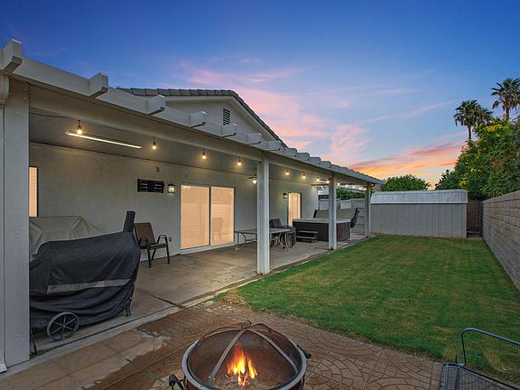 Welcome to 27250 Nortada, a home that combines modern upgrades with everyday comfort in the heart of Cathedral City. Offering 4 bedrooms and 3 full bathrooms, this spacious residence is designed to fit the way you live, whether you're hosting friends and family, working from home, or enjoying time together in the desert.The flowing layout is centered around a newly updated kitchen with modern finishes, while each of the three bathrooms has been refreshed with updated cabinetry for a clean and contemporary feel. An oversized internal laundry room provides additional storage and workspace, keeping the home both practical and functional.Outdoor living is just as inviting, with a large covered back patio ideal for dining, entertaining, or relaxing in the shade. A private hot tub offers the perfect spot to unwind at the end of the day. For those with a love of travel and recreation, RV parking with full hook-ups is ready and waiting. The extra-deep garage easily accommodates a full-size truck and includes a 50-amp 240-volt outlet--perfect for charging an EV or powering workshop equipment.Smart home technology brings convenience and peace of mind with WiFi thermostats, a WiFi sprinkler timer, MyQ garage door openers with keypad access, and a complete security camera system with DVR and monitor. Energy efficiency is enhanced by a brand-new high-performance swamp cooler and a leased solar system that keeps utility costs under control.Blending functionality, modern updates, and lifestyle features, 27250 Nortada offers the space, comfort, and amenities that make desert living truly effortless.