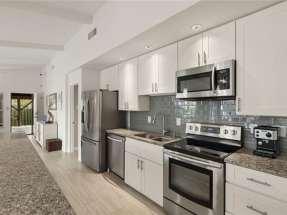 Step into your own gated private oasis with this beautifully remodeled 2-bedroom, 2.5-bath riverfront pool home, offering the perfect blend of tranquility and convenience. Situated in a peaceful setting, this home boasts a kayak dock right at your doorstep, making it an ideal location for water lovers. Launch your kayak, explore the river, or simply enjoy the serenity of the waterfront view. Inside, every detail has been thoughtfully designed. Featuring an open floor plan, vaulted ceilings, modern kitchen, and spacious living area all of which are flooded with natural light, offering a seamless connection to the outdoors. The Zen garden creates the perfect space for relaxation, while the lush surroundings set the tone for peace and calm. Located just minutes from downtown Bonita Springs, this property offers easy access to shopping, dining, and entertainment.. just minutes from Sugarshack Downtown, while providing a private retreat from the hustle and bustle. This is truly a must-see home, offering the best of both worlds – a serene riverside lifestyle and close proximity to all the vibrant attractions Bonita Springs has to offer. Don’t miss out on the opportunity to make this riverfront paradise your own!