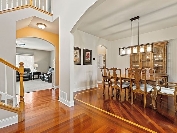 You won't want to miss this absolutely stunning home with backyard oasis to cure those IL winter blues!! This home boasts curb appeal galore with a wrap around covered porch and lush landscaping. Upon entry you will find a meticulously maintained move-in ready property waiting for you to make it your own. Gleaming Brazilin Cherry hardwood floors and 9 foot ceilings. The main level boasts a formal dining room, large family room with custom stone fireplace, kitchen with maple cabinets and a pantry closet with separate breakfast area, powder room and laundry room. Head upstairs where you will find a large primary suite with oversized custom walk-in closet, 2 additional bedrooms, a 4th bedroom that boasts a fully finished attic area that can be used as a bonus room or for storage (no HVAC) and an additional full bathroom. The fully finished basement features a wet bar/mini kitchen, a 5th bedroom and full bathroom. This property is also wired for networking and cable tv along with networking equipment. Head out back where you'll find the star of the show--perfect for those who love entertaining!! Nestled on a huge lot this beautifully landscaped backyard that features an in-ground swimming pool with stone wall fountain, a covered shed/pool-house, a large deck with firepit, built in seating and motorized awnings. There is also a built in, natural gas grill with granite counter tops and pergola. New windows & appliances 2020, roof & water heater 2019. Schedule your showing today, this one-of-a kind home won't last long!! A preferred lender offers a reduced interest rate for this listing.