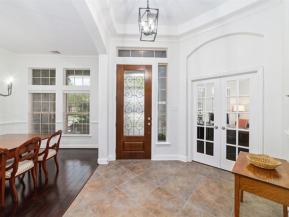 Beautifully maintained, single-story home backing to a private greenbelt in the heart of Spring Trails. This spacious 4-bedroom, 3-bath, 3-car tandem garage home features an open floor plan w/ soaring ceilings, fresh paint, & recent carpeting. Wood floors extend through main living areas & front study framed by elegant French doors. Formal dining offers access to the large entertainer’s kitchen w/ granite countertops, stainless steel appliances, gas cooktop, abundant cabinetry w/ under-cabinet lighting, ample counter space, & walk-in pantry. Living room w/ cozy gas fireplace opens seamlessly to the kitchen/breakfast area. The split floor plan includes two secondary bedrooms at the front sharing a full bathroom, an additional secondary bedroom at the rear with access to another full bath, & a spacious primary suite off the living room featuring a large ensuite bathroom. Amenities include pool, parks, sports courts, events, & access to Spring Creek Nature Preserve. NO FLOODING. Roof-5yrs