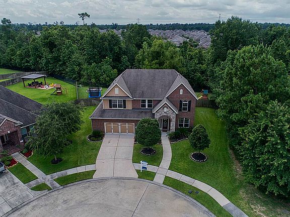 David Weekley 5 Bed room home on big cul de sac lot backing to a private reserve! Updated home with two story den with wall of windows to relaxing views. Island kitchen with white painted cabinets and granite counters opens to den. Spacious master suite with bay window and huge walk-in closet. Upstairs has a huge game room with projector and surround sound along with good size secondary rooms. Backyard has wrought iron fence backing to greenbelt, gardening boxes, Playset stays!