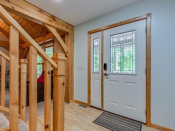 4BD, 4BA walkout modified 2-story nicely situated on private 2+ wooded acres. Captivating living room with vaulted ceiling and exposed knotty timbers. Huge eat-in kitchen w/hickory cabinets and new black stainless appliances. Cement board siding, Marvin windows, solid-core doors, large deck, high-efficiency furnace, water heater, and air exchanger. Ideal layout with a mudroom and main-level laundry, along with 3 bedrooms clustered on upper level, and private master suite w/large walk-in closet.