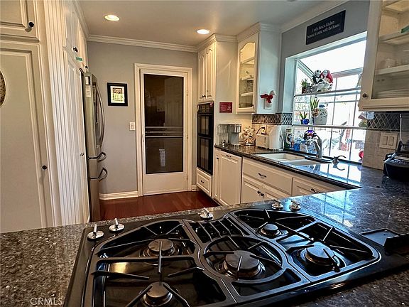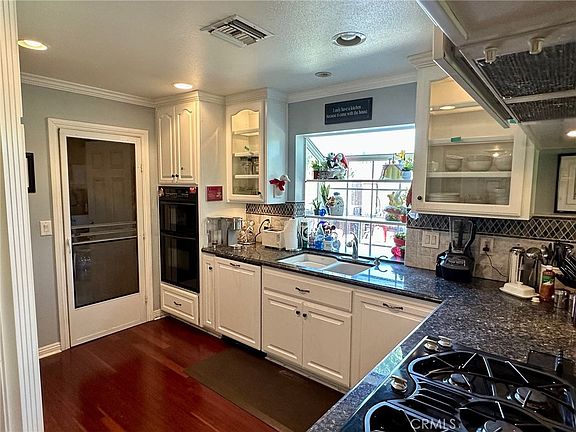Beautiful upgraded home on quiet street. All 3 bedrooms are downstairs with a loft/game room upstairs. Home features engineered wood flooring downstairs with tile floors in bathrooms and carpeted bedrooms. Updated kitchen with modern appliances and granite counter tops. Breakfast bar separates the kitchen from the family room (currently used as dining room) with cozy fireplace. Formal living room features a 2nd fireplace. Crown moldings accent the ceilings with recessed lighting throughout. Upgraded bathrooms feature tile tub/shower enclosures with Corian counter tops. Other features include manicured back yard with covered patio, dual pane windows, and possible RV parking.
