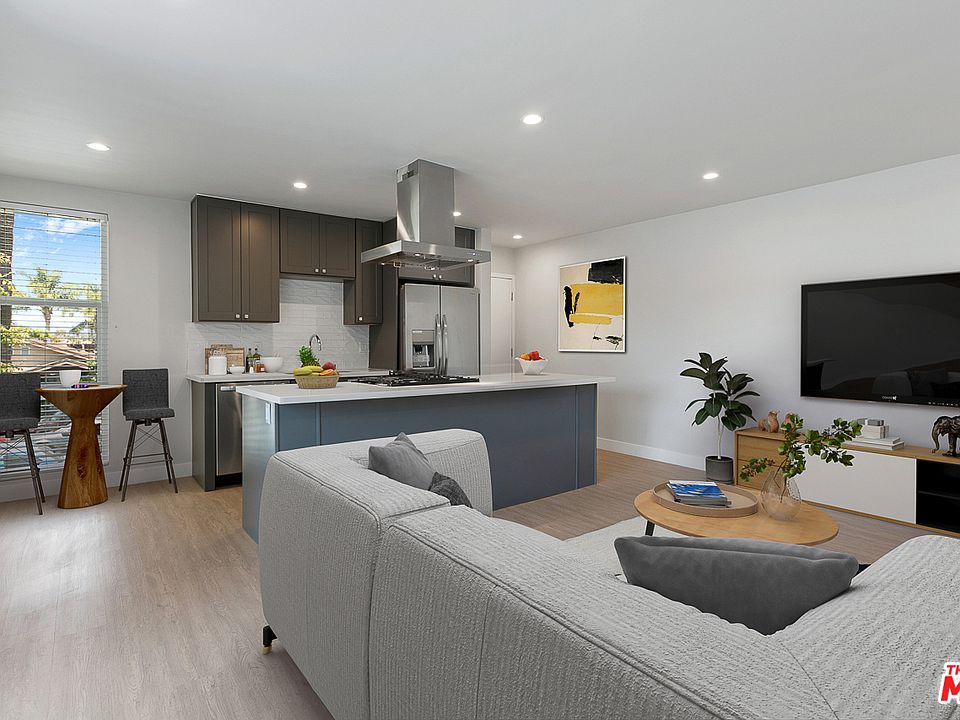 Completely renovated Luxurious 1 bedroom located in the heart of West Adams!! Open floor plan, with a beautiful kitchen that opens up to the living room. A gorgeous large island with stove/ range and hood. Everything has been redone and is new! The property has undergone a major renovation and looks amazing! The apartment features new flooring, LED recessed lighting, completely new bathroom, new kitchen, brand new stainless appliances and washer and dryer included in the unit! This particular apartment comes with a nice balcony as well along with 1 parking space! The work has been done tastefully and with designer finishes for those that want to enjoy living in a nicer and more elegant place. Landscaping is completely new and looks gorgeous as well.