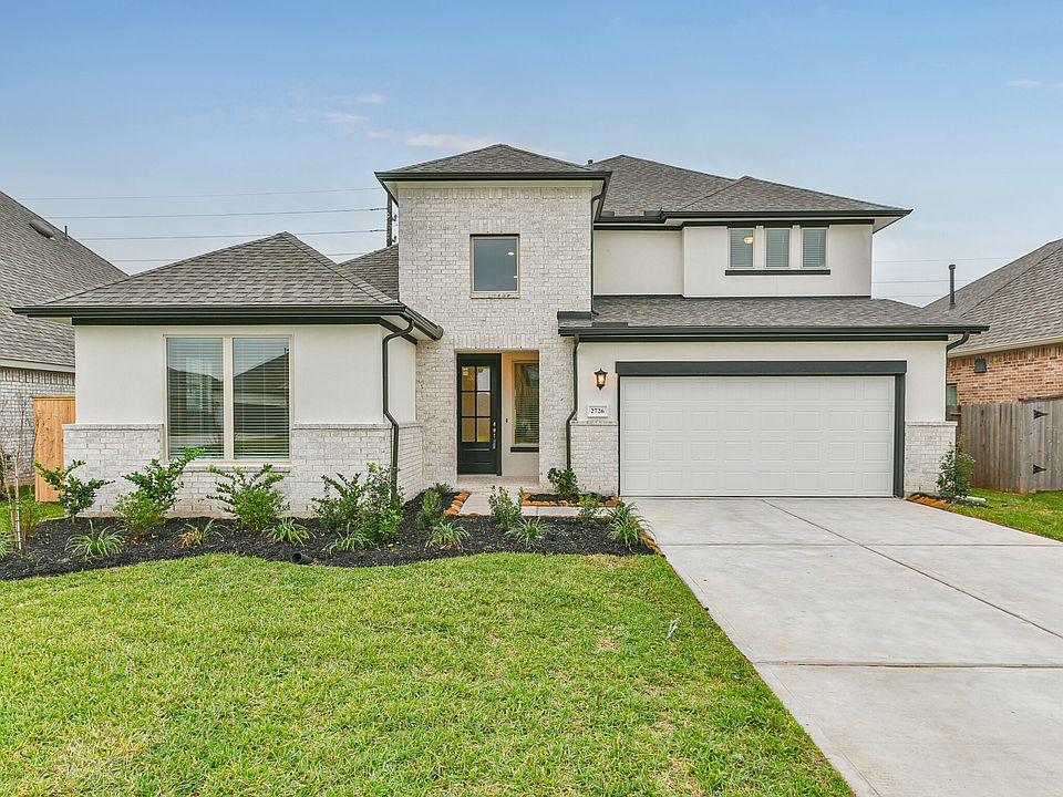 Built by Empire communities! You will love this charming gated community with amenities galore. Located off of the 288 Corridor and C. R. 58, Newport Lake Estates offers the lifestyle you are looking for. Vibrant community has easy access to the Medical Center, Downtown Houston, and Galveston. No back neighbor homesite offering peaceful scenery. Empire's gorgeous Burleson floorplan offers a spacious foyer with 11' tray ceilings. The kitchen offers light gray cabinets, trendy backsplash, quartz countertops, and a living space with tons of natural light and plenty of room for entertaining. Private owner's suite has a ton of character. Oversized covered patio with a ceiling fan! Don't miss an opportunity to take a stroll in the gated community to visit all the great amenities Newport Lake Estates has to offer, basketball volleyball, fishing, boating, and more. *Photos are representative, finishes and selections will differ.