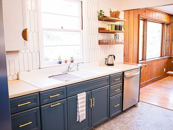 If you are looking for a unique 5 bedroom 3.5 bath that doesn't look like anything on the market, this Duke Forrest home is it. This Mid Century Modern home recently purchased from its original owner and carefully and intentionally restored to its 1950s charm in December 2021. New Hardwoods, restored original wood framed windows and cedar walls, original Cedar shake siding, original restored fireplace, on a half acre lot. Custom fixtures, trim and murals throughout. Trap door bookshelf wall leading to 5th bedroom or study or this space can be opened for oversized entertaining space.