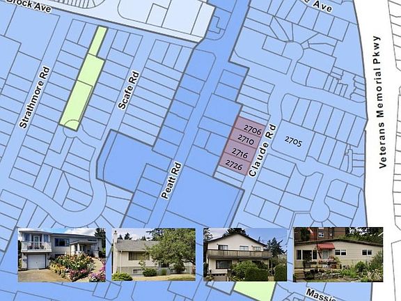 Exceptional DEVELOPMENT OPPORTUNITY in the heart of Langford’s rapidly evolving City Centre. 2706, 2710, 2716 Claude Road are being offered together, creating a four-lot land assembly of approx. 36,000+ sq. ft. With the adoption of Langford’s new City Centre OCP in June 2025, this area is designated “Moderate High-Rise,” permitting up to 12 storeys with optional ground-floor commercial. This policy change has opened the door for transformative development in a community already experiencing record growth. The site is within walking distance of shops, services, dining, schools, and transit, and is near the new University of Victoria campus expansion. Langford continues to be one of BC’s fastest-growing municipalities, with a clear vision for a vibrant, transit-oriented downtown. This assembly represents a rare chance for developers to secure a prime parcel in a proven growth corridor with density already in place via the new OCP.
