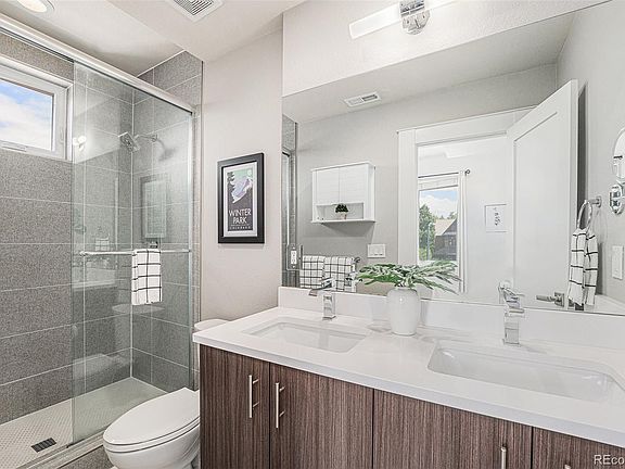 Imagine sipping coffee as the sun rises or unwinding under the stars on your private rooftop deck. This inviting outdoor retreat offers mountain views, fresh air, and the perfect setting to relax or entertain. Inside, the home is thoughtfully designed with modern finishes, soaring ceilings, and an open-concept layout that blends style, comfort, and functionality. The gourmet kitchen shines with stainless steel appliances, a gas range, quartz countertops, and a spacious eat-in island—perfect for casual meals or lively dinner parties. A convenient half-bath is tucked just off the kitchen. The inviting family room is the perfect spot to unwind, whether you’re catching up on your favorite show or curling up with a good book. Upstairs, the serene primary suite features dual sinks, an oversized walk-in shower, and a generous walk-in closet, while a second bedroom provides flexibility for guests, a home office, or a nursery. On the ground floor, a custom desk area creates the perfect setup for working from home or gaming, or additional storage. Additional highlights include a one-car garage with a private driveway and ample storage. Forget about high HOA fees—your party wall agreement takes care of snow removal, trash, and landscaping. Perfectly located, this stunning townhome is a short walk from the grocery store, boutique shops, and some of the neighborhood’s best dining and coffee spots. With easy access to Jefferson Park, Downtown Denver, I-25, and I-70, it delivers connection, convenience, and a vibrant urban lifestyle in one exceptional package. Welcome home!
