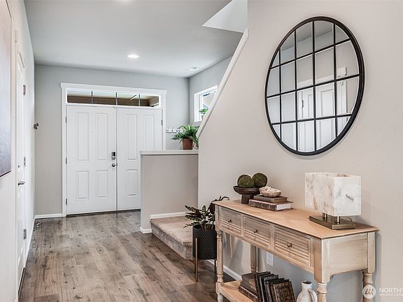 Assumable mortgage! Nestled at the end of a quiet cul-de-sac just steps from the Gateway park, is a beautiful nearly new 5 BR, 2.75 BA that lives much larger than the SF suggests! Main level has bedroom + .75 bath. Home offers rare blend of elevated comfort & style. 9 ft ceilings & oversized windows fill main level w/natural light. Beautiful floors & seamless indoor-outdoor living. Oversized kitchen island, SS apps, gas stove, WI pantry + open layout make entertaining effortless. Retreat to generous primary suite w/spa-inspired 5-piece ensuite, WIC. A versatile flex space offers endless possibilities: ideal for a home office, studio, or media room. Enjoy BBQing, playing + relaxing in the backyard w/LG patio. Keep cool w/ AC, 3 car garage.
