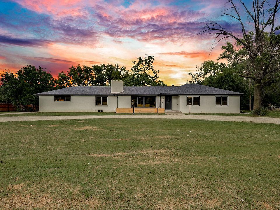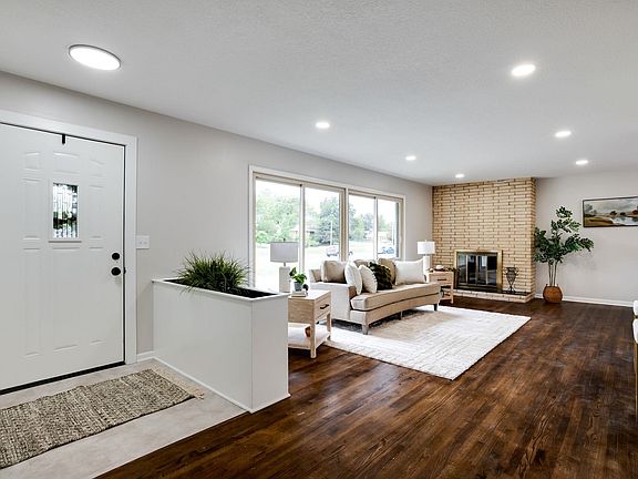 Opportunities for an estate like this do not come often! This 4000+sqft sprawling brick ranch has had every surface updated and improved. All new interior finishes, new roof, new water heater, new electrical, new plumbing, and newer HVAC means easy country living right here in the city! The open living area has beautiful hardwood floors, big sunny windows overlooking the circle drive out front, and a limestone wood-burning fireplace. The dining options are many with island seating, kitchen table area, and a formal dining room. The huge quartz island is the center of this home with new maple cabinets accented with trendy satin brass pulls. New appliances include a stainless dishwasher, microwave, and range with built in air-fryer oven. The south wing is where you find the primary bedroom with ensuite bathroom. The custom tile shower has a wand as well as a rainfall shower-head. Two more large bedrooms, a full bath, and the laundry conveniently located just outside the bedrooms complete the south wing. The north wing has the entry from the backyard. A covered patio leads to a large mudroom. A fourth main floor bedroom that works well as an office has a 2 sided limestone fireplace, warm wall paneling, and a hidden closet. A powder bath is just outside near the garage entry and basement stairway. The basement has an endless rec room with cushy new carpet, a 3-sided limestone wood-burning fireplace, and wet bar with granite counters and one of those new faucets that alternates between rain mode, waterfall mode, or sweep mode with a turn of the nozzle or click of a button. A large bonus room with concrete storm shelter leads to the 5th bedroom with egress window. A full bathroom and 2 storage rooms round out the lower level. Outside... oh the possibilities with 1.6 private acres are endless! The 2 car attached garage doors are on the back of the home for ultimate curb appeal. There is a gravel area for additional parking. Pets? A large section of the yard is already fenced! The back half of the property is a wide open field of dreams. Shop? Pool? Playground? mother-in-law quarters? This is a special property with land, a huge fully remodeled home, and located just minutes from k-96 and the best shopping and dining the east side has to offer. Come tour today!