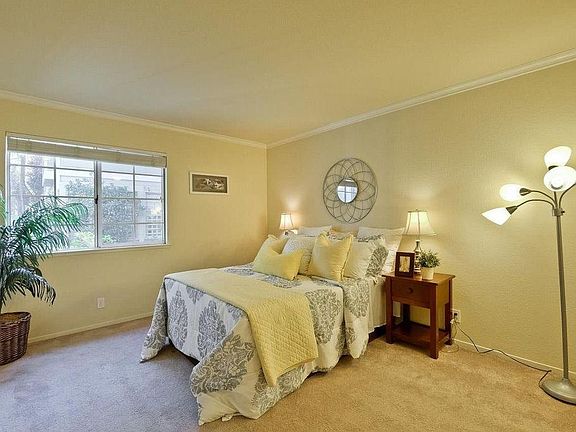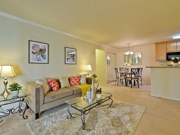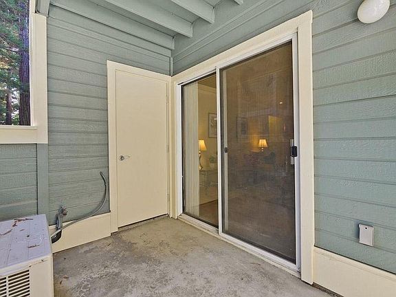 Real gem nested in quiet green belts with beautiful large trees. Cozy down 1st level unit with open floor plan w/ lots of storage. Family room with air-conditioning, private patio & cozy fireplace. Contemporary kitchen with granite counters, upgraded cabinets, stainless steel appliances: built-in microwave, refrigerator included. Updated bathroom with granite counter, enclosed shower over tub. Security community gate, 2 parking spaces (1 assigned car-port #43).
