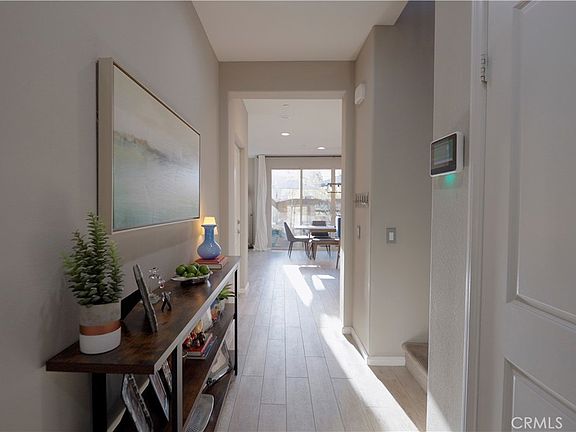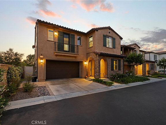 Experience the magnificence of this highly customized and upgraded home, the largest model in the Grayson tract, where 2,563 sqft of impeccable design awaits. This stunning 4-bedroom, 3-bath residence shows like a model and is perfectly situated at the end of the street, offering unparalleled privacy with no rear neighbors. As you enter, you'll be captivated by the gorgeous wood-like tile flooring that flows seamlessly throughout the downstairs. The open-concept layout reveals a spacious kitchen featuring a massive quartz island, extended countertops, a glass tile backsplash, and custom pullout drawers in the pantry and cabinets. This space opens into an expansive family room. Large windows and dual sliders flood the space with natural light, accentuating the high ceilings and creating an airy, inviting atmosphere. A convenient downstairs bedroom and bath provide flexibility for guests or a home office. Venture upstairs to discover a versatile loft area, perfect for a home theater or playroom. Two generously sized guest rooms share a beautifully appointed full bath. The laundry room is expansive, offering plenty of storage and convenience. The primary bedroom is a true retreat, boasting breathtaking views of the neighborhood and surrounding mountains. Its luxurious en-suite bathroom features a large shower with real stone that extends to the ceiling and a separate tub, both encased in limestone. The bathroom also includes dual vanities with elegant countertops, an elegant backsplash, and large mirrors. The walk-in closet is a highly upgraded space, fully built out with matching backing to ensure no walls are visible, providing ample and stylish storage. The garage is as functional as it is stylish, with sleek epoxy floors. The backyard is an entertainer's dream, with pavers, bamboo, and designed for privacy, making it perfect for gatherings. Located close to the resort-style clubhouse, you'll have access to a pool, spa, multiple parks, playground, and dog park. This home is also conveniently near award-winning schools, shops, restaurants, and the 5 or 14 freeway.