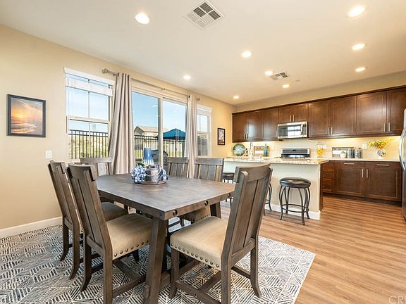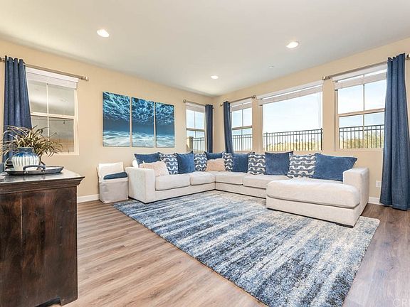 Such an exquisite home with great views! Nestled in the desirable community of Five Knolls, this two-story detached house features 4 bedrooms, 3 bathrooms, 2,212 sq. ft. of living space, central A/C and heat, a 2-car direct access garage and a cozy backyard. So ideal for entertaining family and friends, the open floor plan welcomes you into a great room overlooking the patio, with recessed lighting and luxury vinyl floors. Many dinners to be had in the adjacent relaxed dining area. The lovely kitchen offers a granite center island, quartz countertops, backsplash, stainless steel appliances, shaker cabinets and a pantry. Amazing views await you as you step out to the backyard that offers a newly landscaped stamped concrete patio and a built-in BBQ. You will find a bedroom downstairs and a 3/4 bathroom. Enjoy the sunset views from the spacious master bedroom enhanced by carpet floors. The en suite bathroom shows off a quartz surround soaking tub, separate single vanities, a separate shower and a large walk-in closet. The two secondary bedrooms are of ample size.The hallway full bathroom features a double sink vanity with quartz top. The upstairs laundry room has gas dryer hook-up. Upgrades include luxury vinyl floors downstairs, a tankless water heater, raised panel doors. Five Knolls offers amenities such as a club house, a pool, spa, fire pit, a recreation room. Close to parks, shopping and the 14 freeway. Come in, take a look. Make this delightful home yours!