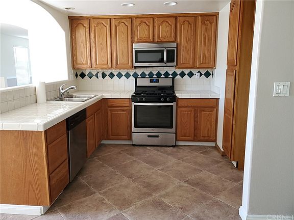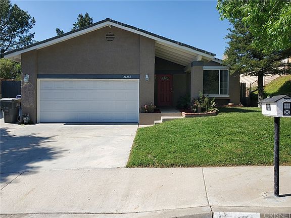 Gorgeous Single story view home on over 1/3 acre in Saugus! New paint inside and out, newer flooring and appliances ( SS). Remodelled master bath has both a big oval tub and separate shower stall. Access to back yard with sliding glass door. Master bedroom also has a roomy closet and high shelves for pottery. Two other spacious bedrooms and second bath with shower tub. The living room has a nice fireplace, wood floors and large window facing outside garden. The family room also has access to back yard .There is a secondary pass door to side yard off the formal dining room. The attached 2+ car garage has shelving and has a high ceiling for additional storage. Outside there are 2 long runs for your dogs or ? One side is all cement with custom dog house and planter area. Other side is grass with another gate to front of the house.Possible small RV access to left of garage. Fully landscaped, the feature to see is the amazing views from the house and back yard. Stairs down to the large yard are new and there is room for a garden for lots of fruit trees and plants. Several large mature trees offer shade and privacy while there are expansive views of the mountains in the distance. Great for those summer BBQ's and evenings to look at the stars!