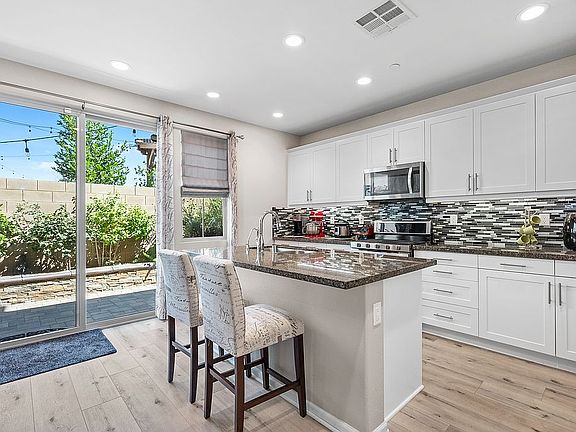 OWNED SOLAR PANELS & Highly Upgraded Home! Welcome to an Amazing Five Knolls Home that provides a downstairs bedroom and open floor plan! Newly installed Luxury Plank flooring throughout the entire home. This luxurious home provides open space from the great room to the dining area and a gorgeous kitchen w/stainless steel appliances, granite counters, custom back splash, breakfast bar, LED lighting and osmosis water system. Off the kitchen, enjoy a beautifully customized patio with block pavers, stacked stone planter, lush greens, built in led lighting for night entertainment and pergola providing shade on those sunny days! Mountain views from the Master Suite and a master bathroom providing a separate tub and shower with extremely spacious walk-in closet . SAVE HUNDREDS of dollars every month with this energy efficient home including a tankless water heater, double paned windows and OWNED SOLAR PANELS with electric car hook up! Community has walking, hiking, pool, clubhouse for parties and events! Butterfly Knoll and Golden Valley Park is down the street including play areas and an enclosed dog park! This home is at the end of 2 cul de sacs providing a quiet neighborhood with low traffic.