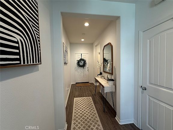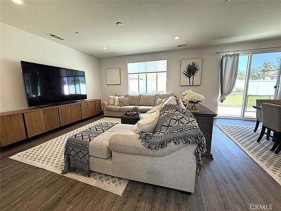 Welcome to Camden Place at Menifee Town Center! This beautifully maintained 2,257 sq. ft. home offers a versatile open floorplan perfect for both relaxing and entertaining. Nestled in the heart of Menifee, this 4-bedroom with Loft, 3-bathroom home combines modern convenience with stylish comfort. Step inside to a bright and airy living space, filled with natural light from expansive windows. The open-concept kitchen is a chef’s dream, featuring granite countertops, modern stainless steel appliances, a large walk-in pantry, and a spacious center island with bar seating. Ample cabinetry provides storage for all your culinary needs. Enjoy seamless flow into the adjoining family room, complete with a lovely fireplace—perfect for gatherings. A main-floor bedroom and full bathroom provide ideal accommodations for guests or multigenerational living. Upstairs, you'll find three additional spacious bedrooms and versatile loft. The luxurious primary suite provides a large walk-in closet and private en-suite bathroom. Step outside to a generously sized backyard with concrete patio enclosed by low-maintenance vinyl fencing, and a poured cement patio and walkways—ready to be transformed into your dream outdoor retreat. Built in 2020, this home comes with energy-efficient upgrades including a tankless water heater, LED lighting, energy-efficient windows, a 14-SEER high-efficiency HVAC unit, and PAID OFF solar panels for added savings. Plus a light package and interior sprinkler system. EV CHARGING STATION in garage! Enjoy all the amenities that Camden Place has to offer: a community pool, scenic walking trails, clubhouse, dog parks, and playgrounds—all conveniently located near schools, shopping, dining, and freeway access. Don’t miss this incredible opportunity to make this exceptionally well priced home yours!