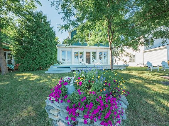 HERE IS YOUR CHANCE to own the PERFECT LAKE HOUSE! Located on Chaumont Bay and completely rebuilt in 2006, the architectural design of this CUSTOM home is impeccable with the most STUNNING maple and cherry hardwoods throughout! 3 very generous size bedrooms, 2 full baths, an open spacious kitchen, dining and living area which all offer lake views. The deck has amazing PANORAMIC VIEWS of Point Peninsula, Cherry Island, Point Salubrious and Pillar Point, just a great place to enjoy a glass of wine and watch the sailboats pass! The swimming, boating, and fishing is phenomenal here and the sun and moon rises are second to none! This 1,870 square foot Lake Ontario residence sits on .60 acres with 50' of PRISTINE water-frontage! Also included is a private boat launch, 2 stall garage and a shed. You will not be disappointed, from the moment you enter the home you will FALL IN LOVE! Located on a quiet road, Three Mile Point is beyond scenic and charming. ACT FAST!