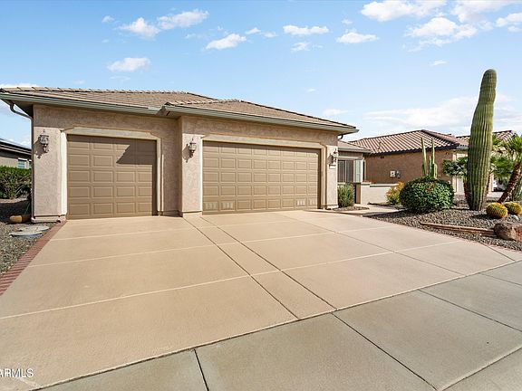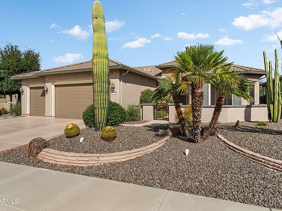 A SPECTACULAR FIESTA MODEL WITH BRAND NEW HVAC, OWNED SOLAR & 3 CAR GARAGE ON A PREMIUM GOLF COURSE LOT WITH MOUNTAIN AND LAKE FOUNTAIN VIEWS! The inviting front courtyard leads you to an open concept floor plan. The large living/dining area showcases scenic golf course views of hole#5.The chef's kitchen is an entertainers delight w/huge center island, SS appliances, miles of counterspace, pull out shelving and cafe dining. The expansive master suite w/large bay window frames the view of the fairway. The lux bath has separate tub/shower and large walk -in closet. The guest suite is complete w/adjoining full bath. The Den can be used for an office or hobbies. Enjoy outdoor living on the extended patio w/amazing views of the golf course, mountains & the beautiful lake water feature!