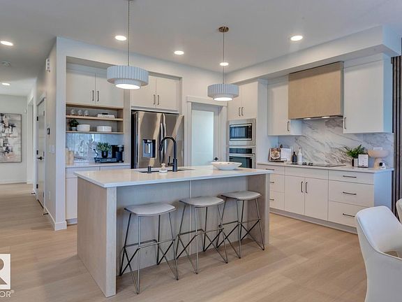 Your best life begins with a home that inspires you. Welcome to the Alexandria by a renowned builder in the sought after Uplands at Riverview. A rare walkout, 5 Bedroom home with not 1 but 2 ensuites! Backing onto a pond providing gorgeous views from the living room, kitchen, deck, and primary bedroom! This home is fully loaded with a full size spice kitchen, and main floor bedroom with 3 piece bathroom. On the upper level you will find the primary ensuite, a secondary ensuite, along with 2 other bedrooms and a separate common washroom, bonus room, and laundry! High-end designer finishing's include cabinets to the ceiling, quartz countertops throughout, railing, fireplace, MDF closets, textured ceilings, and upgraded tiling! This brand new masterpiece offers more than just space, it delivers style, flexibility, and comfort for modern living. Photos are representative.