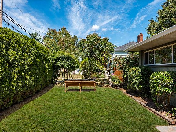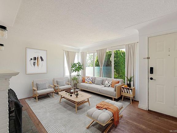 Welcome to this beautiful one-level duplex, with no shared interior walls to the neighboring property, connected only by the carport for maximum privacy. Brimming with charm and character, this home is perfectly situated just steps from cafés, local shops, restaurants, parks, and pubs—offering the ideal blend of comfort and convenience. Nestled on a quiet street and only minutes to downtown Victoria by car, bus, or bike. Inside, you’ll find coved ceilings, hardwood floors, a bright and spacious living room with a cozy wood-burning fireplace, and a lovely kitchen—perfect for hosting or everyday comfort. Two generously sized bedrooms filled with natural light, and the private yard that is ideal for pets and gardening, complete with raised beds ready for your veggies. At 801 sq ft, this home is efficiently laid out and move-in ready. What a great alternative to condo living! With over $30,000 in updates, this turnkey gem is a rare find. Come see for yourself—you’ll be impressed!
