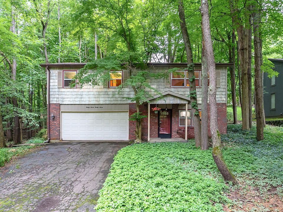 Charmingly nestled by Glen Park South, this delightful house is your next home. Relax and enjoy nature from the front porch swing. Enter the newly carpeted lower family area; cozy and warm with a fireplace, full bath, mechanical/laundry room and 2 car garage access. Upstairs an open living room flows into a dining area off of the kitchen; both have new flooring. The roomy kitchen has plenty of storage and overlooks a wooded backyard. Slider doors open to a large screened sun deck; a private oasis where you feel a part of nature while being safely secluded. Both the primary bedroom with an attached full bath, and the 2nd bedroom are spacious and overlook the woods. The 3rd bedroom has 3 closets and could be an office area. This neat home is in the desirable Winchell neighborhood close to downtown, shopping, entertainment and highways.