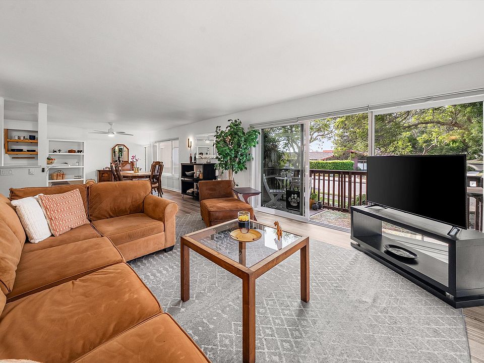 Step inside and you'll immediately feel the openness. The living room is bright and airy, with a generous patio framed by beautiful views. The kitchen, ideal for entertaining, connects seamlessly to the living space and features granite countertops, custom-lit cabinetry, an induction oven, and a new dishwasher.