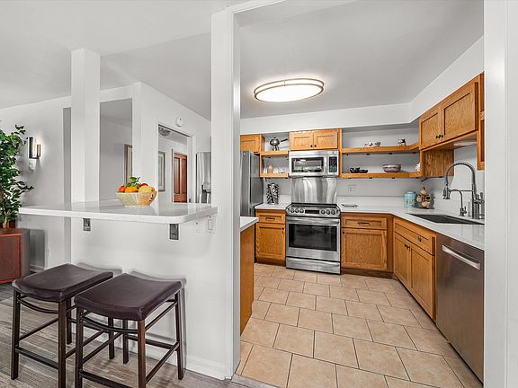 Every detail has been considered, from new windows and Hunter Douglas up-and-down shades, curtains to upgraded thermostats, modern lighting, and radiant ceiling heat that works beautifully. The building includes gated parking with your own assigned space number 43 right near the entrance door, double storage cabinets, an elevator, and laundry facilities.