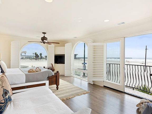 Welcome to Shoreline, your gorgeous beachfront oasis in San Diego. Situated right on the water, this idyllic home invites you to spend your days enjoying perfect weather from the beachfront deck or on the patio, where you can soak in the hot tub, grill out, and gather around an alfresco dining table. Inside, bright and airy interiors feature classic coastal design, such as a soft color palette, breezy linens, and plush furnishings. A large, open floor plan connects all elements of the space, perfect for large groups to mosey about the home comfortably. There's even a second kitchen and dining area on the second floor. Gather around the adobe-style fireplace with your loved ones and toast to the best sunset you'll ever see! Designed with you in mind, this home features bright and airy interiors with classic coastal design elements like a soft color palette, breezy linens, and plush furnishings. The large, open floor plan connects all elements of the space seamlessly, making it perfect for large groups. Enjoy the convenience of a second kitchen and dining area on the second floor, and gather around the adobe-style fireplace for memorable moments. This home comes with a pack n' play travel crib available. A high chair can be provided upon request with at least 24 hours advanced notice. Just ask and we are happy to accommodate you and your little ones! Deemed "America's Finest City", San Diego lives up to the hype. From beach hopping to riding Belmont Park's seafront roller coaster, there's plenty to do in this upbeat, laid-back beach destination. This is the burrito capital of the world, after all! With SeaWorld, Legoland, and one of the best zoos in the country, it's playtime all the time in this sunny Southern California city. Nearby attractions include Belmont Park, Sunset Cliffs Natural Park, SeaWorld San Diego, Riverwalk Golf Club, Pacific Beach Pier, Olive Cafe, Cannonball sushi, Taco Surf, Mission Bay Sailing, The Loma Club Golf Course, Little Italy, San Diego Zoo, and La Jolla Cove. We allow service animals at this home. If undisclosed pets are brought into the home without approval there is a fine of $500 per pet. The unit is surrounded by other homes in a close-quartered area and we would appreciate being mindful of the volume of the activities that may occur. Any amplified sound that can be heard 50 feet away from your residence is prohibited. This home has a noise ordinance time between 10 PM and 8 AM, meaning even a normal conversation must be moved to inside the home during these hours. AC is only available upstairs. Our occupancy includes an additional two beyond bed count. Trifold floor mattresses and additional linens can be provided upon request. This home is located in a neighborhood with a strict noise ordinance policy and therefore is only suitable for quieter groups. If violations occur you may be subject to a fine that can reach up to $10,000. This is a smoke-free property. Violation of the no-smoking policy will result in a $300 smoking fee and liability for any fire or property damage costs. As part of our commitment to being good neighbors, occupancy limits and quiet hours (9 PM-8 AM) are strictly enforced. No speakers or sound systems will be provided for use in our properties. Violation of any noise ordinances will be subject to fines that can reach up to $10,000 per violation. Events or parties are not allowed without prior written approval and an additional fee. Any unauthorized parties or events will be shut down and a fine will be assessed. We work with 3rd party vendors to maintain the property, and although we adhere to the strictest CDC guidelines and advise all contractors to wear PPE equipment, we cannot always enforce this. We strongly advise guests to deny access if any vendors fail to meet and adhere to these standards. IDs will be requested for verification after booking.