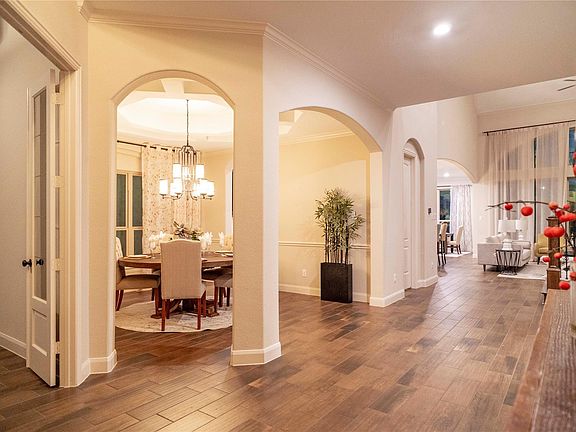 Spacious backyardCovered patioSoaring ceilingsGourmet granite island kitchenGame and media roomsPrivate first-floor primary suite