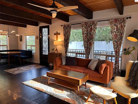 Private, fully remodeled cottage on 2.2 acres in sought-after Selle Valley — minutes to Sandpoint, Schweitzer & Lake Pend Oreille. Originally built in 1975 and completely renovated in 2021, this 1.5 story cedar Craftsman blends designer updates with warm, cozy cabin character. Set on a beautifully varied parcel featuring an elevated forested knoll and level open pasture, the property offers exceptional privacy, usable land, and natural beauty just minutes from Sandpoint. Inside the 1,536 sq ft home, open-beam tongue-and-groove ceilings, engineered bamboo flooring, abundant natural light, and a high-efficiency Blaze King wood stove create a welcoming cabin-style atmosphere with modern comfort. The open-concept living, dining, and kitchen area is thoughtfully designed with quartz countertops, 42” shaker cabinetry, subway tile backsplash, stainless Samsung appliances, gas (propane) cooktop, pot filler, farmhouse sink, and center island workspace. The main-level primary bedroom sits adjacent to a beautifully updated bathroom with custom tile and marble-top vanity. Upstairs offers two additional bedrooms, including a flexible loft-style space ideal for office, studio, guest retreat, or creative space. Outdoors, the lifestyle continues with a detached double garage featuring a 525 SF shop area, pole barn/carport, 441 SF custom chicken coop with power and enclosed yard, storage shed, deer-fenced garden with southern exposure, fruit trees, mature cedar and fir, gated paved driveway, and abundant wildlife including deer, elk, eagles, and osprey. Major systems are already complete: 12 GPM well, whole-house water filtration (2024), tankless water heater, electric heat pump with A/C, generator hookup, updated septic system (2016), and energy-efficient vinyl windows. Located just minutes from downtown Sandpoint, Lake Pend Oreille, and Schweitzer Mountain Resort, this property offers rare privacy, acreage, modern upgrades, and year-round North Idaho recreation. A turnkey opportunity for buyers seeking a stylish cabin-style home with land near Sandpoint — where comfort, craftsmanship, and lifestyle come together.