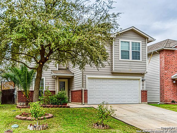SOLAR PANELS INCLUDED! Average electric bill is about $40 per month. This beautiful 2-story, 3 bed, 2.5 bath home with separate study, which could be used as another bedroom, features a gourmet tiled kitchen with 42" cabinets, solid counter tops, island, all kitchen appliances, dining room, up and down living areas with all bedrooms upstairs and study down. Home sits on greenbelt with large backyard and expansive deck for entertaining and is minutes from Shopping, Entertainment, Sea World & Lackland AFB.
