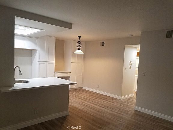 Beautiful condo in Village Niguel gated community with detached garage. 1 bedroom, 1 bath, lower level. The condo has remodeled kitchen, bathroom and flooring It has white shaker kitchen cabinets, quartz counter top, stainless stove, microwave plus extra cabinets in the dining area for more storage, white bathroom vanity, laminating and tile flooring and stackable washer and dryer. There is patio to sit and enjoy your morning coffee.