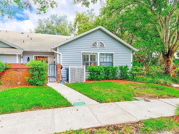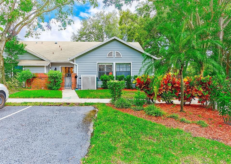Welcome to this updated 2-bedroom (could be 3 - *large office, bonus room), 2-bath villa in the desirable Village at Bentley Park community of Palm Harbor. Offering 1,390 sq. ft. of living space, this home features an open-concept layout with vaulted ceilings and abundant natural light. The new kitchen includes granite countertops, stainless steel appliances, and classic white cabinetry. A versatile den provides flexible space for an office, hobby room, or guest area. The primary suite features ample closet storage and an en-suite bath. Enjoy outdoor living with a front open patio and a rear oversized custom screened patio with large added storage, perfect for year-round enjoyment. The villa is beautifully landscaped and surrounded by mature trees for shade and privacy. Located in Flood Zone X, no flood insurance is required. The maintenance-free community provides exterior upkeep and resort-style amenities, including a pool, tennis courts, and landscaped grounds. Conveniently located near shopping, restaurants, banks, and medical services, with Gulf beaches just a short drive away—this is a must-see villa in this area!