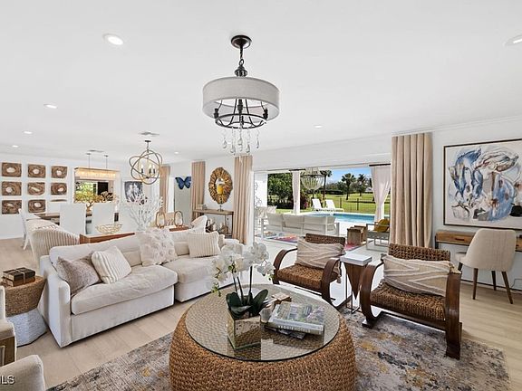 Located in Moorings, one of Naples' most desirable and highly sought-after neighborhoods is this chic and 3 bedroom/3 full-bath home featuring an open-concept living area, and an oversized, covered lanai with a heated pool and sweeping views of the Moorings golf course. Decorated by one of Naples' finest interior designers, Wilfredo Emanuel. Short distance to downtown and the beach, this home comes with a private beach membership card to a private beach. This property boasts a prime location, situated conveniently west of 41. It is just a few minutes away from the beach, Venetian Village, andWaterside Shops, making it the perfect spot for those who enjoy a lively and active lifestyle. The area is renowned for its scenic beauty, upscale shopping and dining options, and easy access to various recreational activities. Whether you're looking to relax at the beach, explore local attractions, or indulge in some retail therapy, this location has something for everyone.