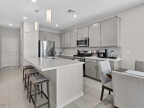 Welcome to your dream home in North Las Vegas, where contemporary living meets convenience. This nearly new, stunning house boasts three cozy bedrooms and a large loft, perfect for both first-time buyers and growing families. Inside, modern finishes shimmer alongside stainless steel appliances and a chic backsplash that will inspire your culinary adventures. Step outside to discover a spacious, landscaped oasis complete with low-maintenance synthetic grass — the ideal setting for relaxing or entertaining. Enjoy the added luxury of a two-car parking space, ensuring ample room for vehicles. The community park offers a serene retreat for leisure and play, while the nearby freeway and shopping centers cater to all your needs with ease. This residence is more than just a house; it's a lifestyle upgrade waiting for you to move in and start making memories.