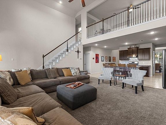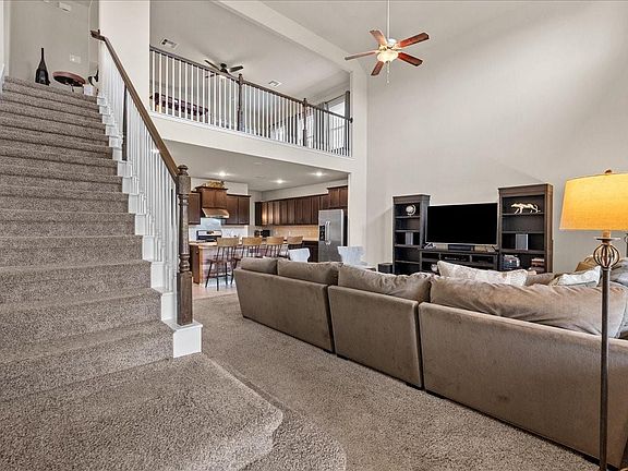 This spacious and inviting DR HORTON built 3296 sqft home, with NO BACK NEIGHBORS features 4 large bedrooms, 3 full baths, and SIDE BY SIDE 3-CAR GARAGE in Tuscan Lakes master-planned community. The open-concept design features a huge family room flowing seamlessly into a gourmet kitchen with MASSIVE WALK-IN PANTRY, granite countertops, a center island, and abundant counters & cabinetry. Large first-floor primary suite boasts tray ceilings, a luxurious ensuite bath, and a massive walk-in closet. A SECOND SPACIOUS BEDROOM IS LOCATED ON THE FIRST FLOOR with a walk-in closet, plus adjacent full bathroom. Upstairs, two large bedrooms, with large walk-in closets, are joined by a versatile huge game room and media room, ideal for both relaxation and entertaining. A covered back patio and large well-kept yard complete the home, with access to excellent community amenities and highly rated schools. Additionally, this house has no front or back neighbors and has North and South facing exposure.