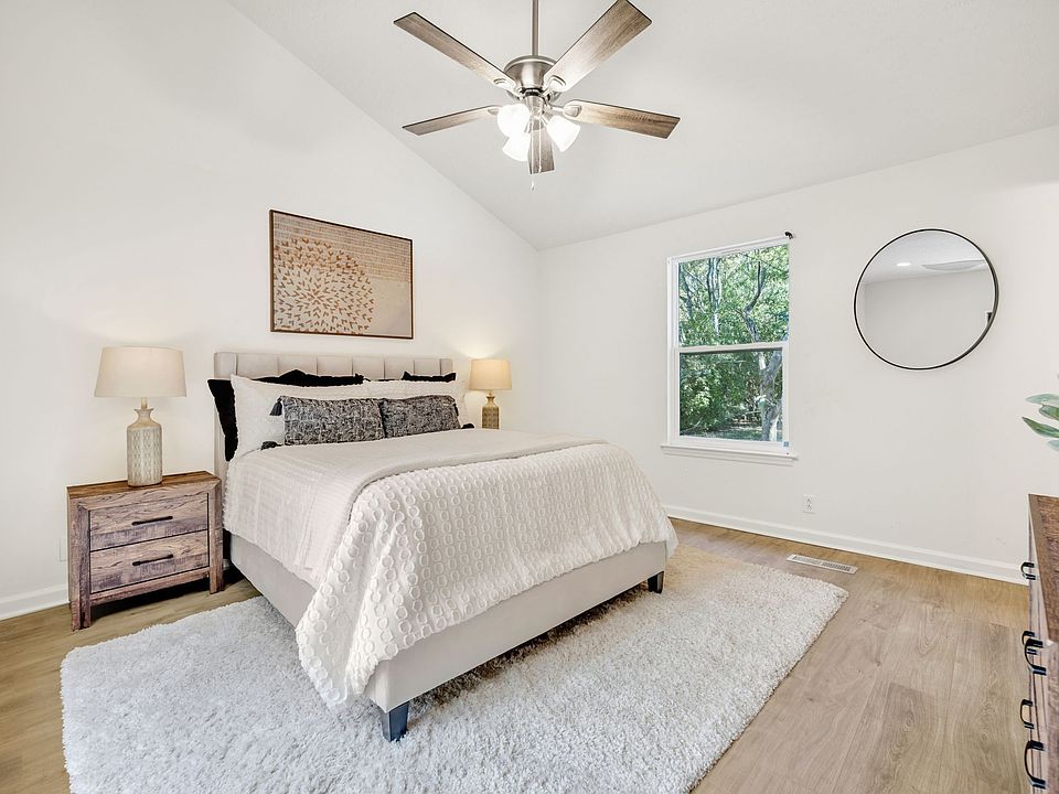 Priced below recent appraisal!! Beautifully renovated and move in ready, this home is sure to impress! You'll love the character and charm of this home. The living room features cathedral ceilings and flows seamlessly into the new kitchen! The eat-in kitchen has new appliances, countertops, and cabinets and leads to a brand new deck perfect for entertaining or just enjoying a quiet evening at home. The home features two bedrooms and two full bathrooms, both of which have been fully renovated! All new flooring throughout - NO carpet!!! New windows too! This is one you don't want to miss!