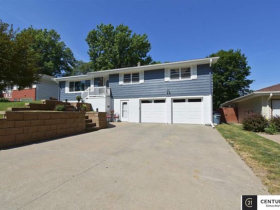 Beautiful Re-claimed raised ranch. Oak floors refinished on main level. All flooring in home replaced. White wood work, clean updated home. Spacious room sizes, large kitchen, plenty of dining space. Master bedroom includes walk-in closet and impressive 3/4 bath. Fenced, level back yard w/fire pit. New garage doors and openers, 24/20 garage w/double driveway. Everything your family needs is here. Close to Aksarben, interstate, St.Thomas Moore. NEW: Roof, Gutters, Retaining Wall, Interior and Exterior Doors and Paint. Master Bathroom, Plumbing, Hot Water Heater , Water Softener, Refrigerator and Dishwasher. All within the last 5 years.