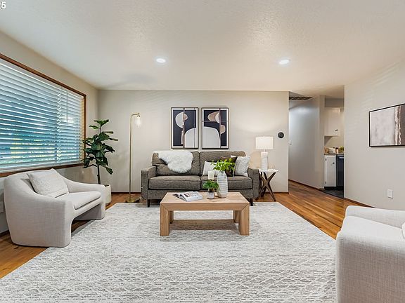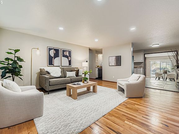 Set on a quiet street in Portland’s Centennial neighborhood, this beautifully updated mid-century one-level home blends classic character with modern comfort. The bright, open layout and thoughtful updates make every space feel warm and inviting.Inside, a sunken living room with luxury vinyl flooring and dimmer lighting sets a relaxed tone, while the spacious family room centers around a wood-burning fireplace. The remodeled kitchen features a stone backsplash, newer stainless steel appliances, and modern finishes that feel both stylish and timeless. Both bathrooms have been tastefully remodeled as well.Smart-home features include a Nest thermostat, WiFi-enabled lighting controls, dimmers throughout, keyless entry, and fresh interior paint. The forced-air gas furnace and central A/C heat pump are nearly new—installed just two years ago—providing efficient, worry-free comfort year-round.Step outside to a private, fenced backyard retreat with an outdoor fireplace and three storage sheds. The landscape is alive with edible plantings including blueberries, figs, peaches, currants, lavender, and grape vines—plus many more to discover. It’s a lush, inviting space for gardening, relaxing, and entertaining.Durable aluminum siding, an attached one-car garage, and easy access to Powell Butte Nature Park complete this move-in-ready home, offering the perfect balance of modern updates and natural beauty.