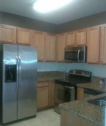 Beautiful 2/beds, 2 1/2 baths unit, tile throughout down and upstairs. Laminated wood stairs. Nice little yard on front of unit. Stainless steel appliances and granite counter tops. Very cozy, both rooms with a private bathroom. Gated Community. Won't Last! Pets are allowed with a non refundable deposit.