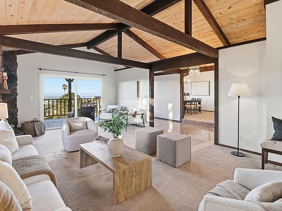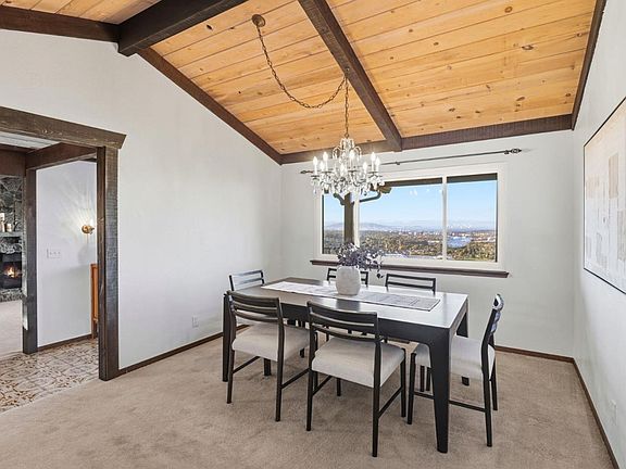 Experience breathtaking panoramic views from this stunning Belmont home. The main level offers 3 bedrooms and 2.5 baths, thoughtfully designed for comfort and style. Enter through a tiled foyer into a bright living room with dramatic vaulted ceilings, exposed beams, and sliding doors opening to a front deck with spectacular vistas. A bonus room nearby makes an ideal office or study.