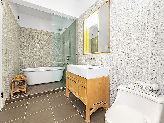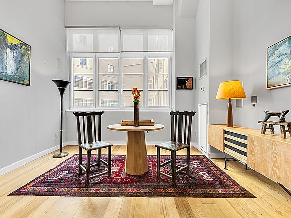 This stunning 837-square-foot convertible one-bedroom offers an airy, open design with 14-foot ceilings, hardwood floors, and a wall of windows overlooking the serene, Japanese-inspired interior garden. The spacious alcove/sleeping area, enclosed by a sleek glass sliding door, includes two closets and accommodates a king-size bed with room to spare. The bathroom is a spa-like retreat, featuring a deep soaking tub and a rain shower. The modern kitchen comes equipped with a dishwasher, Liebherr refrigerator, microwave, and a versatile island offering additional storage. With ample closet space and an in-unit washer and dryer, this residence combines comfort and convenience.