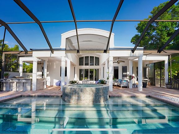 Heated pool and spaWaterfront on canalTiled screened lanaiOutdoor kitchenFull bunk bedCovered brick paver patioMany windows