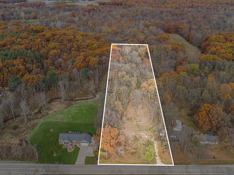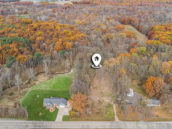 Here is your chance to own 5 acres of land across from Sandy Pines and a private, wooded setting with a creek running through the back half of the property! It is ready for your dream home! Perfect building site! The seller has recently had a survey done so stakes are in the property. Seller recently had a soil boring test and a well and septic evaluation so property is ready to go for you! Only like 20 mintues to GR! On a paved road. Options to build near road or build farther back of property. Tall trees and rolling hills but also level in areas!