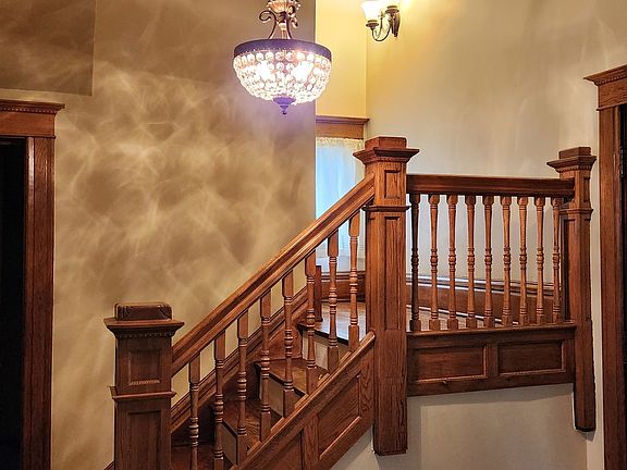 Surround yourself with beauty and elegance in this lovely, updated Victorian west end Peru home! Many unique features with detailed character! New concrete steps invite you through gorgeous french doors that flow throughout the home. Hardwood floors and detailed attractive woodwork! Large living room with faux fireplace and french doors is a plus for entertaining. Spacious dining room makes an excellent choice for large gatherings if needed. Quaint cute workable kitchen with all appliances. Glass front stylish cabinets. Upstairs is an attractive sitting area plus 3 large bedrooms and large closets. The bedroom doorways announce character with transom windows. 2 full baths with 2nd level laundry! Full basement with work benches and shelving for extra storage. The home has been radon remediated. 2 car heated attached garage with sliding glass doors to a brick semi-circle patio area. Mature plantings, cute garden shed, wrought iron fenced yard perfect for pets or privacy. New central AC, new tankless water heater, 7 repainted rooms, new west basement windows, 1new bath upstairs are the most recent updates.