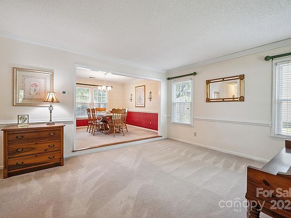 Welcome to this charming move-in-ready 4 bedroom, 2.5 bath cul-de-sac home in the sought-after Brightmoor subdivision in Matthews. With a formal living and dining room off the entry, the huge two-story greatroom is open to the kitchen and breakfast area. Natural light flows through a wall full of windows. The light with the beautiful serene views of the backyard creates a happy, peaceful energy throughout the home. The flat backyard is completely fenced, has a large paver patio and is landscaped with mature trees and shrubs. The primary suite is huge with vaulted ceilings and has a large primary bath including shower and garden tub. New carpet on stairs and all of the 2nd floor. Very large secondary bedrooms/bonus with great closet space in each. BEAUTIFULLY maintained, this home is ready for your personal touch.