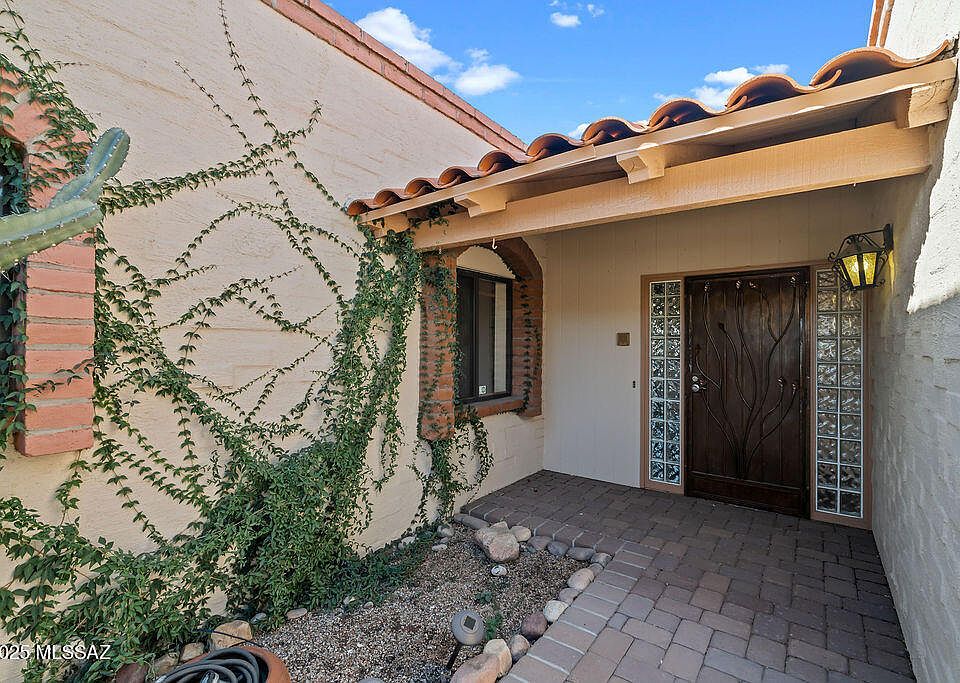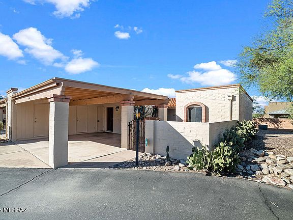 Charming and super clean with many upgrades! Great central location just north of TMC. This is a prime lot in a very desirable and beautifully maintained Townhome development. Exquisite stained concrete floors throughout. Updated kitchen and baths with quartz counter tops. End unit with private front entry, and storage galore in carport. No need to preview!