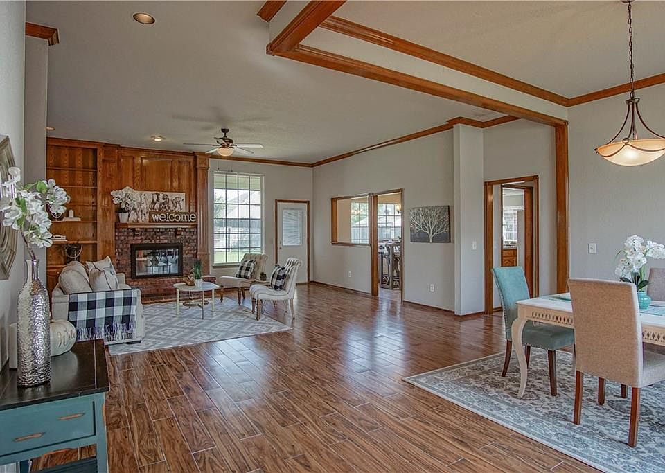 Welcome Home to this UPDATED 3 Bed/2.5Bath/2Car Garage Home in West Edmond~You will be Immediately Greeted w/ Updates Galore~Crown Molding/Chair Rail Around Main Living Area~New Flooring Throughout including Wood Tile & Fresh Carpet~Lovely Formal Dining Area opening up to Your New Living Area Featuring Built Ins & Gas Fireplace~Huge Eat In Kitchen w/ TONS of Storage, Granite Countertops, All New Stainless Appliances, Fridge Stays, & Built In Desk~Nice Sized Utility Room W/ Sink & Additional Storage~Relaxing Master Retreat Featuring Dbl Doors Leading into Your En Suite Bath w/ Separate Tub and Shower, Dbl Sinks, TONS of Counter Space, SkyLight, & HUGE Walk In Closet~2 Generous Guest Bedrooms w/ Lrg Closets & Ceiling Fans~Spacious Guest Bath W/ Tub/Shower Combo & More Storage Space~Covered Back Patio Leads into Your GINORMOUS Backyard Oasis~Plenty of Room for Entertaining or a Pool~Close to Major Roads, Turnpike, Shopping, Restaurants, & Entertainment~Hurry Before this One Slips Away